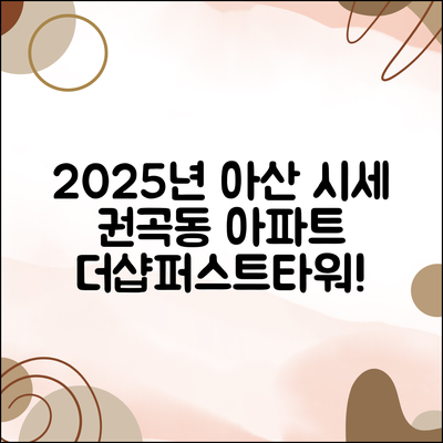 여러분, 부동산 투자에 있어 좋은 전략을 세우는 것이 얼마나 중요한지 잘 알고 계시죠? 특히 충청남도 아산시 권곡동의 아산더샵퍼스트타워 아파트는 2025년 10월 시세를 고려할 때 무궁무진한 가능성을 지닌 곳입니다. 그렇다면 여러분은 이 시점에서 어떤 전략을 세우면 좋을까요?