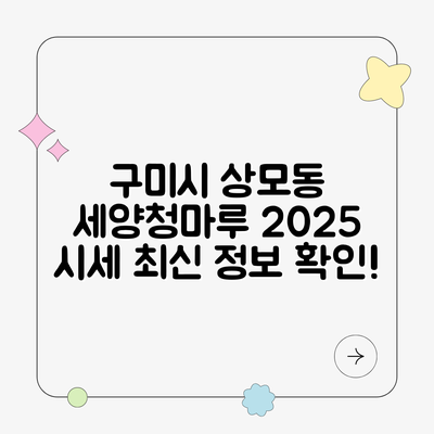 경상북도 구미시 상모동의 세양청마루 아파트는 2025년 10월 시세 전망이 중요한 요소입니다. 이 가이드는 투자 결정을 내리기 위한 핵심 전략을 제공합니다.