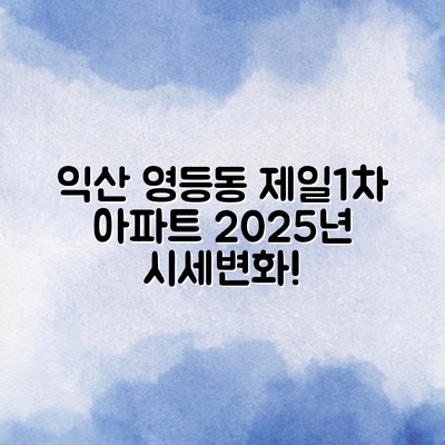 여러분, 아파트 투자가 고민되신 적 있으신가요? 특히 전라북도 익산시 영등동 제일1차 아파트의 시세 상황이 궁금하신 분들이 많을 텐데요. 2025년 11월 시세에 대해 알아보면서 진짜 투자 가치가 있는지 함께 고민해보죠.