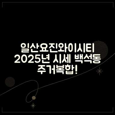 부동산 시장은 늘 변화무쌍해요. 여러분도 그런 경험 있으신가요? 어떤 지역에 투자할지 고민하면서도, 적절한 시점을 놓치지 않기 위해 신중해지는 순간들이요. 특히, 경기도 고양시 일산동구 백석동 일산요진와이시티(주거복합) 아파트 같은 곳은 이제 우리의 주목이 필요한 시점입니다!