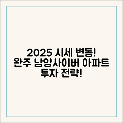 전라북도 완주군 이서면 남양사이버 아파트의 2025년 12월 시세를 이해하고 현명한 주택 선택을 위해 다음 단계를 따라 진행하세요.