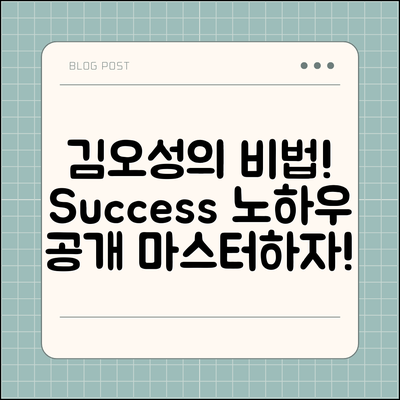 이렇게 김오성의 이야기를 통해 배운 비법들을 실천해보세요. 당신의 꿈도 현실이 될 수 있습니다!