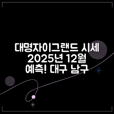2025년 12월 대구시 남구 대명동 대명자이그랜드시티 아파트의 시세는 다양한 요소에 의해 영향을 받을 것으로 보입니다. 본 시세 예측은 시장 동향, 인근 개발 계획 및 주거 수요의 변화를 기반으로 합니다.